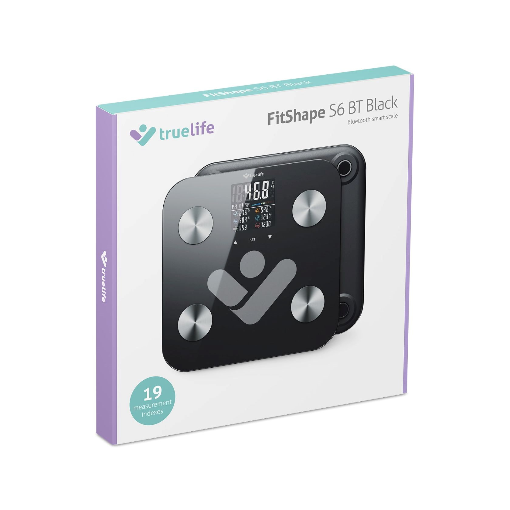 Inteligentná váha TrueLife FitShape S6 BT Black dokáže o používateľovom tele odhaliť oveľa viac než len hmotnosť. O tom, ako na tom telo je, vypovedajú skôr indexy ako BMI, BFR alebo BMR. Ide o výpočty pomerov tukovej tkaniva či množstva energie potrebnej na správne fungovanie tela. Takýchto merateľných indexov tela dokáže váha zistiť 19, a to najmä svalovú frekvenciu, pomer vody v tele, hodnotu bielkovín, hmotnosť kostí a veľa ďalších.