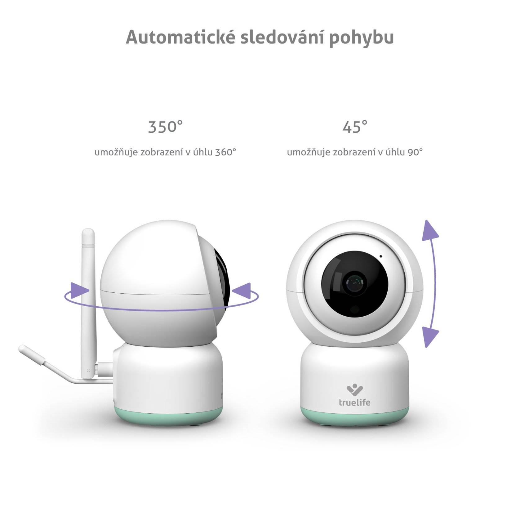Rotačná pestúnka disponuje schopnosťou zachytiť pohyb a otáčať sa za ním. Túto funkciu môžete napríklad využiť pre staršie deti či domácich miláčikov.