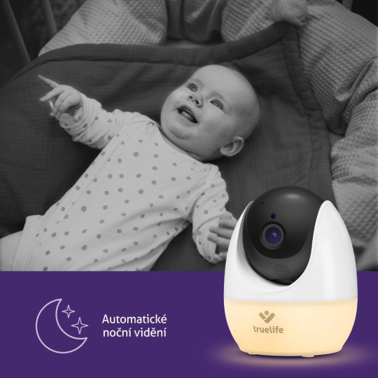 Príchod dieťaťa na svet je nezabudnuteľný okamih a je prirodzené, že rodičia chcú byť pri každom úsmeve, pohybe a pokojnom spánku. Sú však chvíle, keď s bábätkom nemôžu byť, a vtedy prichádza na rad spoľahlivý partner, 360° otočná detská pestúnka TrueLife NannyCam R4 Pro. Vďaka nej máte dieťa na dosah na 4,3" LCD IPS displeji, nech ste kdekoľvek, a to až zo vzdialenosti 300 metrov. Takže môžete bez obáv bežať pre kuriéra alebo vešať bielizeň do sušičky, zatiaľ čo váš malý poklad spí. Hneď ako sa zotmie, automaticky sa aktivuje nočné videnie, takže môžete svoje dieťa sledovať v perfektnej kvalite aj počas noci. Batéria vydrží až 10 hodín, pričom pri zapnutom režime VOX až 17 hodín. V tomto prípade sa displej aktivuje len vtedy, keď detská pestúnka zaznamená zvuk. Ak sa vaše dieťa prebudí, môžete ho vďaka obojsmernej komunikácii upokojiť svojím hlasom skôr, ako sa k nemu dostanete. K dispozícii je aj 8 upokojujúcich uspávaniek, ktoré pomáhajú vytvoriť pocit bezpečia. Praktické funkcie, ako je detekcia izbovej teploty a pripomenutie kŕmenia, uľahčujú každodennú starostlivosť, a to aj pri podávaní liekov počas choroby. A pretože deti nerady zaspávajú v tme, ponúka detská pestúnka aj príjemné nočné osvetlenie. Pre ešte väčšie pohodlie môžete k rodičovskej jednotke pripojiť ďalšiu kameru a monitorovať viac miestností naraz. Kamera TrueLife NannyCam R4 Pro je nielen detská pestúnka, ale aj váš neúnavný asistent, ktorý vám pomôže nájsť rovnováhu medzi starostlivosťou o dieťa a všetkým ostatným, čo k rodičovstvu patrí.
