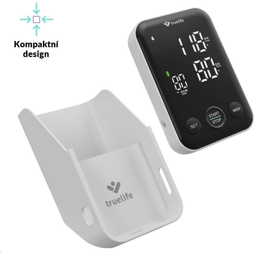 Tlakomer TrueLife Pulse B-Vision je bez pochyby jedinečný svojim dizajnom, o čom svedčí aj prestížne ocenenie Design Award. LED displej, ktorý slúži k zobrazeniu nameraných hodnôt je dostatočne veľký a vďaka čierno-bielemu kontrastnému prevedeniu aj veľmi prehľadný. Súčasťou balenia je praktický stojan, do ktorého jednoducho uložíte tlakomer aj manžetu.