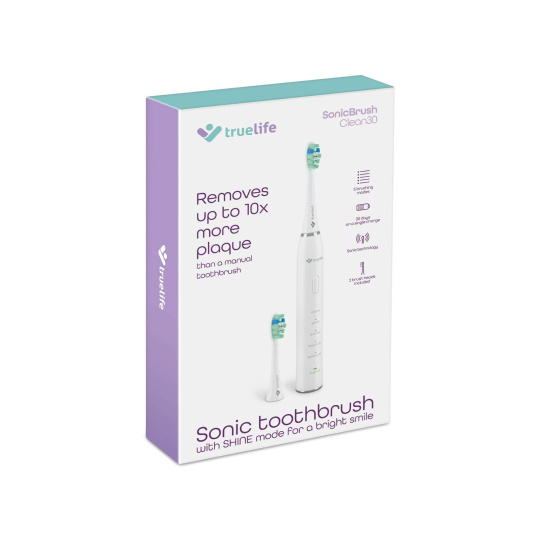 Sonická technológia predstavuje účinný spôsob boja proti zubnému povlaku. Oproti rotačným kefkám je šetrnejšia k zubnej sklovine a vírením vody s pastou pomáha čistiť aj medzizubné priestory. Technológia SonicTrue® funguje na báze jemných vibrácií a oproti manuálnej kefke, s ktorou urobíte približne 600 pohybov za minútu, zvládne TrueLife SonicBrush Clean30 za jednu minútu až 70 000 pohybov pre žiarivý úsmev bez námahy. Hlavica kefky vydrží až 3 mesiace používania, potom sa štetiny začnú strapkať, strácajú účinnosť a navyše sa na nich hromadia baktérie. Našťastie sú hlavice opatrené modrými štetinami, ktoré po 3 mesiacoch vyblednú a vy tak viete, že je načase ich vymeniť.