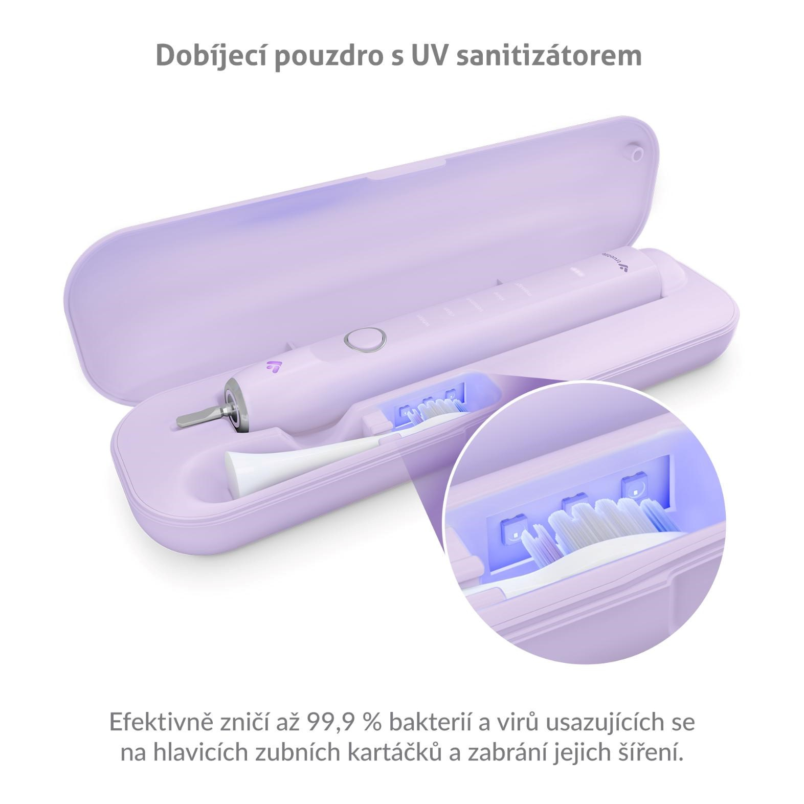 Na hlaviciach kefiek sa usadzujú vírusy a baktérie, ktoré môžu spôsobovať nepríjemnosti v ústnej dutine. Stačí však 5 minút a UV sterilizácia ich až 99,9 % zničí. Puzdro vydrží na jedno nabitie až 17 dní pri použití 2× denne.