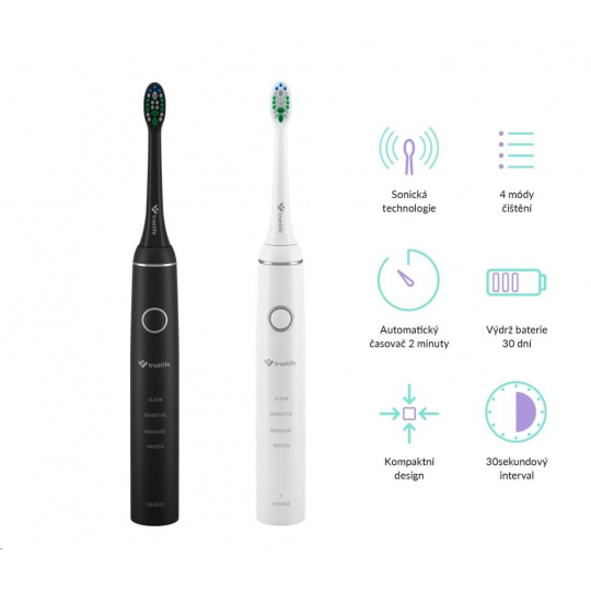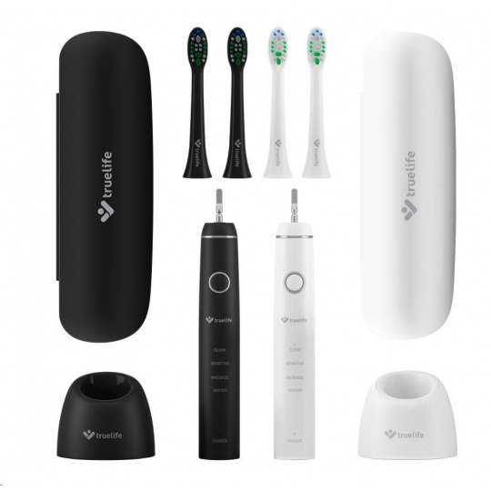 Chcete mať zdravé zuby a ďasná? Nerobiť si stres pri každej návšteve zubára? Na kartáček TrueLife SonicBrush Compact s modernou sonickou technológiou sa môžete spoľahnúť vy, aj váš partner. V sade Truelife SonicBrush Compact Duo totiž nájdete dve sonické kefky (v čiernej a bielej varianto), štyri zubné hlavice, dve cestovné púzdra a dve dobíjacie základne. Doprajte si aj vy exkluzívnu zubnú starostlivosť, vďaka ktorej získate žiarivý úsmev a nedáte šancu škodlivým baktériám. Hlava kefky kmitá vysokou frekvenciou a každým pohybom odstráni maximum zubného plaku. Môžete vyberať zo 4 režimov čistenia. Batéria kefky vydrží až 30 dní.