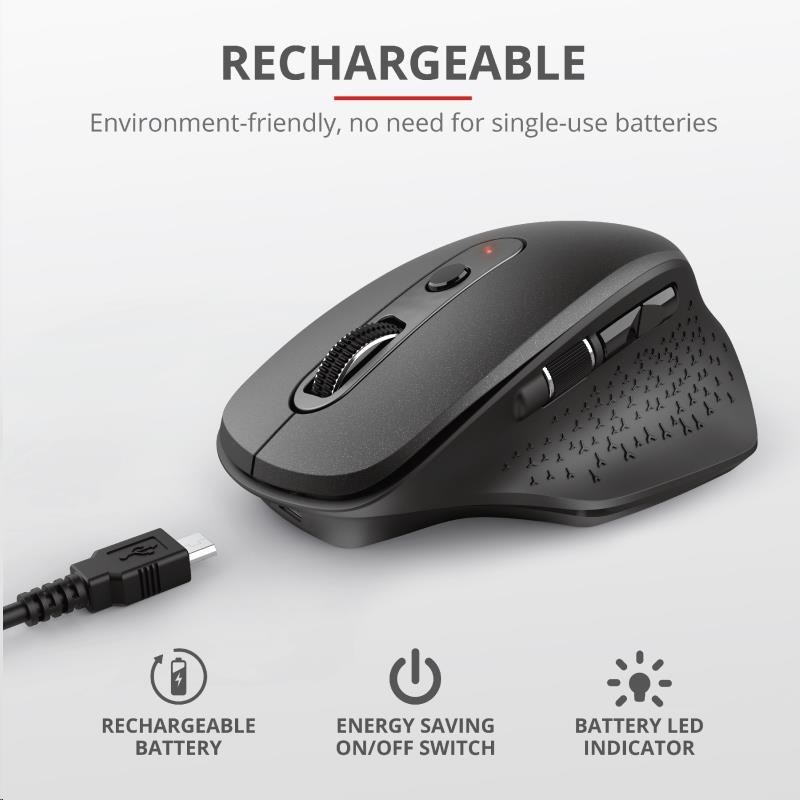 TRUST Ozaa Dobíjacia bezdrôtová myš - čierna