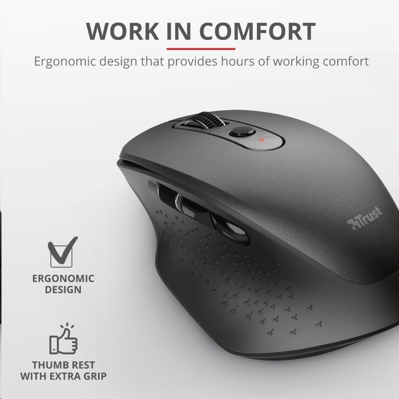 - Prémiová bezdrôtová myš s ergonomickým dizajnom, ktorý poskytuje hodiny pohodlia pri práci