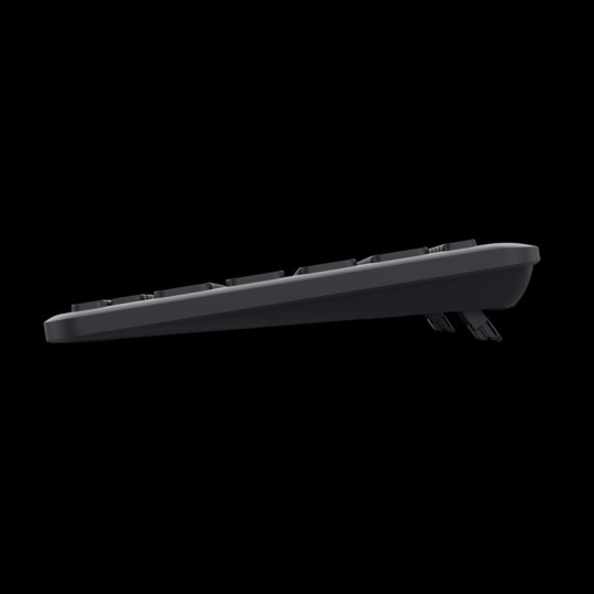 Kompaktná bezdrôtová klávesnica pre viac zariadení, ktorá umožňuje jednoduché a pohodlné pripojenie; vyrobená z recyklovaných materiálov.