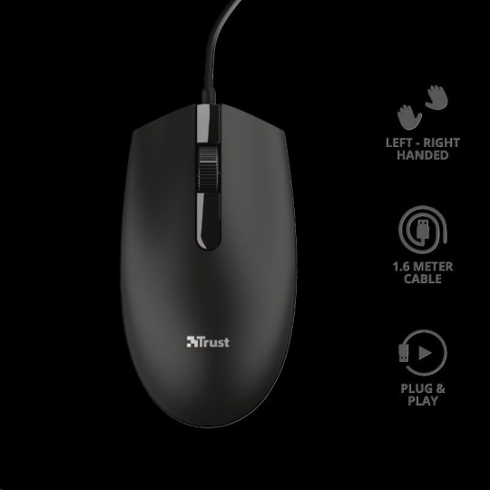 Optická myš s 3 tlačidlami; možno ovládať pravou aj ľavou rukou Špecifikácie: - Optická myš s 3 tlačidlami - Moderný optický senzor poskytuje presné ovládanie pohybu, 1200DPI - Možno ovládať pravou aj ľavou rukou - Stačí pripojiť a začať používať, nie je potrebné inštalovať ovládače Systémové požiadavky: - Windows XP až Windows 10 - Port USB - 160 cm dlhý kábel USB Obsah balenia: - Optická myš - Používateľská príručka..