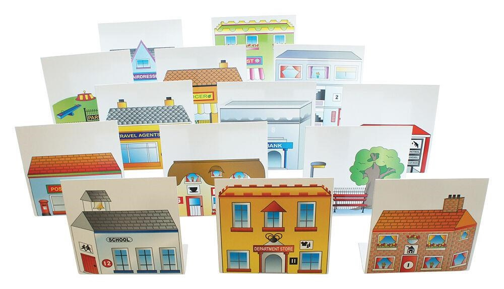 Balíček okolia pre Bee-Bot & Blue-Bot robota. Vybuduj si vlastné mesto pre Bee-Bota alebo Blue-Bota. Balíček obsahuje podložku, pouličné lampy, stromy, budovy a 22 drevených kusov pouličného nábytku.