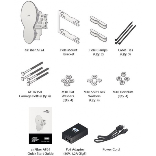 zariadenie Ubiquiti airFiber AF24 je určené na chrbticové spojenia, pracuje v nelicencovanom pásme 24 GHz s reálnou priepustnosťou až 1,4 Gb/s! Jednotka je vybavená dvoma parabolickými anténami, jednou na príjem a druhou na prenos dát, technológia MIMO. Na výber je niekoľko režimov prevádzky: FDD (Frequency Division Duplex) a HDD (Hybrid Division Duplex), ktoré umožňujú dosiahnuť vysokú rýchlosť a spektrálnu účinnosť. Systém HDD ponúka nízke oneskorenie systémov FDD a spektrálnu účinnosť systémov TDD. Podporovaný je plne duplexný a poloduplexný režim, transparentný mostík L2 a 128-bitové šifrovanie AES.