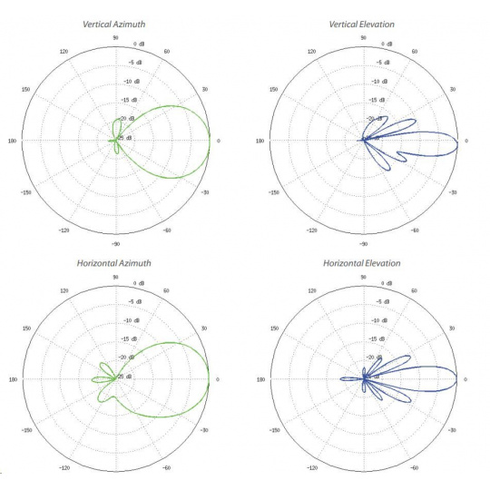 Šírka lúča 45° (H-pol) / 45° (V-pol) / 45° (elevácia)