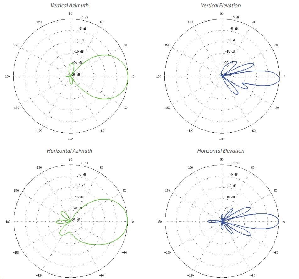 Šírka lúča 45° (H-pol) / 45° (V-pol) / 45° (elevácia)