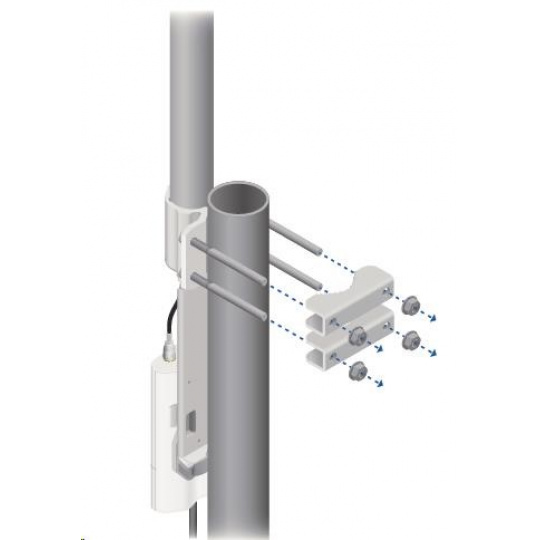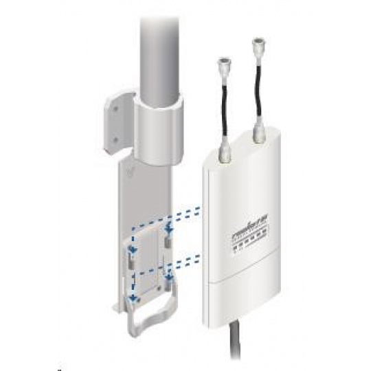 ide o robustné 13dbi všesmerové anténne riešenie pre prístupové body pracujúce v pásme 5 GHz a využívajúce štandard 802.11n v kombinácii s technológiou MIMO. Anténa má dva konektory RSMA typu žena. Súčasťou dodávky sú dva vodotesné pigtaily RSMA na pripojenie k jednotke Rocket M5, držiak pre túto jednotku a montážna súprava na stožiar, pozri. obr.