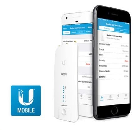 novinkou v produktoch airMAX ac GEN2 je integrovaný 2.4GHz, ktorý sa používa na nastavenie rádia pomocou mobilného zariadenia. Aplikácia UMOBILE je na stiahnutie zadarmo pre platformy iOS aj Android. airPRISM