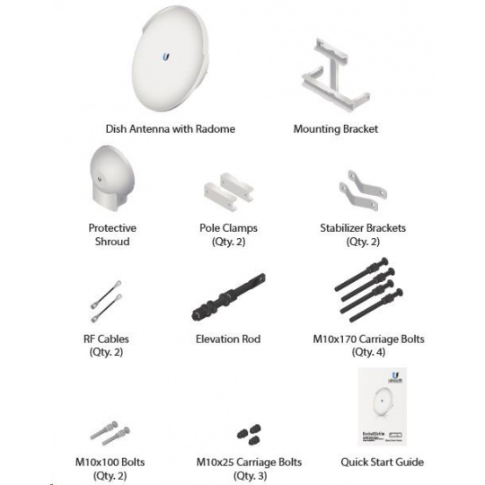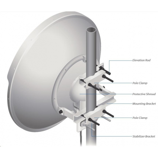 ubiquiti RocketDish RD-5G31-AC je 2x2 parabolická anténa vhodná na dlhé spojenia PtP. Všetko je pripravené na jednoduchú a rýchlu inštaláciu jednotiek Rocket - súčasťou balenia sú aj dva pigtaily RSMA, takže nie je potrebné nič dokupovať. Anténa má lepšie smerové charakteristiky, vynikajúci pomer prednej a zadnej strany (F/B) a menšie bočné laloky, t. j. menej rušenia s okolitými anténami.