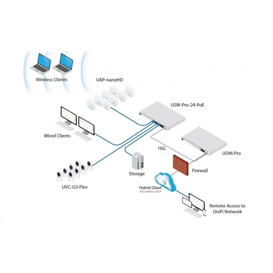 UniFi Dream Machine Pro od spoločnosti Ubiquiti Networks je komplexné sieťové riešenie pre malé a stredné podniky. Je to veľmi výkonné zariadenie s výškou 1U v 19" stojane a kombinuje tieto funkcie: