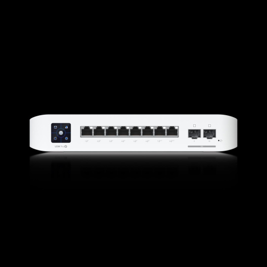 Popis produktu Ubiquiti USW-Pro-8-PoE je novým switchem, který nabízí až 6 POE/POE+ portů, schopných dodávat až 30 W, a také 2 POE++ porty, které dokážou dodávat až 60 W. Celkový maximální výstupní výkon je 120 W. Switch má 2 SFP+ porty s rychlostí až 10 Gb/s, což je ideální pro přenos i větších souborů. Na přední straně switche najdete dotykový ovládací panel i s AR nastavením. Switch lze také upevnit na zeď pomocí příslušného držáku. Klíčové vlastnosti • Podpora nejnovější POE++ • Velmi rychlé SFP+ porty až 10 Gb/s • Podpora L3 • Dostupnost až 120W pro POE • Možnost připevnění na zeď Technické parametry Konektory a rozhraní Rychlost LAN:(8) 10/100/1000Mbps Optické rozhraní:(2) 1G/10Gbps Ostatní:Dotykový displej Napájení Typ napájení:Ze sítě (230V) Typy PoE:PoE-Out (pouze) Podporované PoE-Out standardy:802.3af, 802.3at, 802.3at - ultra PoE (60W) Počet PoE Out portů:8 PoE budget [W]:120 Max. spotřeba energie [W]:150 Napájení přes konektor/svorkovnici:230V AC (přímo do zásuvky) Fyzické charakteristiky Provedení:Desktop Ventilátory:Bez ventilátoru Šasi:Plastové Tlačítka:Reset Provozní teplota [°C]:-5 až 45 Šířka [mm]:248 Výška [mm]:200 Hloubka [mm]:44 Obecné Rychlost přepínání [Gbps]:56 Software Management:UniFi controller Funkce:L3 Výchozí IP adresa:Dynamická z DHCP.