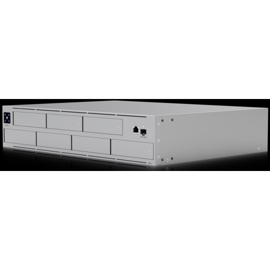 Popis produktu NAS pro montáž do 2U racku disponující 7x 2,5/3,5" pozicemi pro disk, jedním Gbe RJ-45 portem a jedním 10G SFP+ portem pro uplink. Vhodný pro ukládání velkých souborů. Poháněn je čtřjádrovým procesorem ARM Crotex-A57 pracující na frekvenci 1,7 GHz, který je doplněný o 8 GB operační paměti. • (1) 10G SFP+ uplink a (1) GbE RJ-45 port • Ochrana dat pomocí technologie úložiště RAID • Připraveno na zálohování napájení UniFi • 1,3" dotykový displej pro správu • Podpora bluetooth 4.1 • Max. příkon 135 W Obsah balení • Zařízení • Napájecí kabel • Příslušenství pro montáž do racku Technické parametry Konektory a rozhraní Počet slotů pro HDD:7 Rychlost LAN:(1) 10/100/1000Mbps Gigabit LAN:Ano Optické rozhraní:(1) 1/10Gbps Ostatní:Dotykový displej, Bluetooth Napájení Typ napájení:Ze sítě (230V), UniFi SmartPower RPS Redundantní napájení:Ano Max. spotřeba energie [W]:160 Napájení přes konektor/svorkovnici:230V AC Fyzické charakteristiky Provedení:Rackmount Materiál:Zinek, Ocel Počet "U" pozic:2 Provozní teplota [°C]:-5 až 40 Hmotnost [kg]:9,5 Šířka [mm]:442 Výška [mm]:87 Hloubka [mm]:325 Hardware Podporovaná kapacita HDD [TB]:16 CPU:ARM Cortex-A57 Software Úroveň RAID:1 - mirroring, 5 - striping, 10 - mirroring.