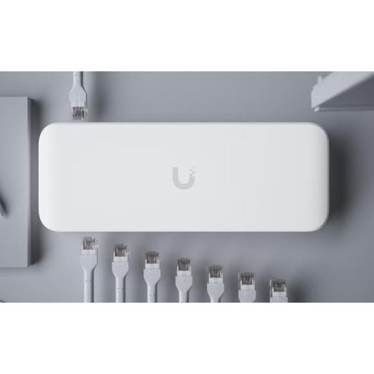 Popis produktu Kompaktní 8 portový gigabitový PoE switch. Switch disponuje 1 PoE in portem a 7 PoE out porty s podporou PoE napájení 802.3af/at s maximálním zatížením až 30W na port. Switch je spravován pomocí aplikace UniFi network umožňující centrální správu Vaší sítě včetně cloudového přístupu. Maximální PoE budget switche je závislý na způsobu napájení: • při napájení DC adaptérem 54V/3,9A (není součástí balení) je PoE budget 52W • při napájení pasivním PoE adaptérem nebo 60W PoE++ adaptérem je PoE budget 45W Obsah balení • switch • montážní set Technické parametry Konektory a rozhraní Rychlost LAN:(8) 10/100/1000Mbps Napájení Typ napájení:DC konektor, PoE Typy PoE:PoE-Out + PoE-In Podporované PoE-Out standardy:802.3af, 802.3at Počet PoE Out portů:7 PoE budget [W]:52 Max. spotřeba energie [W]:60 Napájení přes konektor/svorkovnici:44 .. 57V DC Fyzické charakteristiky Provedení:Na zeď, Desktop Ventilátory:Bez ventilátoru Šasi:Plastové Tlačítka:Reset Provozní teplota [°C]:-15 až 45 Šířka [mm]:203 Výška [mm]:33 Hloubka [mm]:76 Obecné Rychlost přepínání [Gbps]:8 Software Management:UniFi controller Funkce:VLAN.