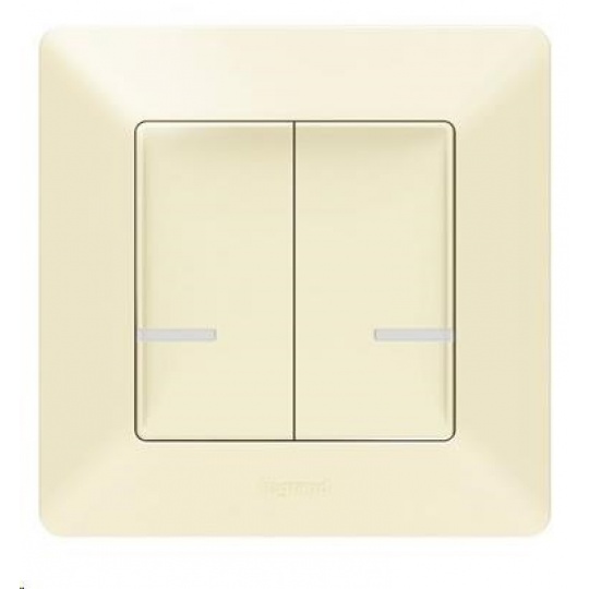 Valena Life s dvojitým bezdrôtovým spínačom osvetlenia Netatmo (batéria CR2032 a obojstranná lepenka sú súčasťou balenia) na ovládanie až 20 káblových zariadení (vypínačov/stmievačov, zásuviek, mobilných zásuvkových adaptérov, káblových zásuviek a osvetľovacích mikromodulov). Zadná strana je úplne plochá (možno ju pripevniť na stenu, sklo, nábytok pomocou skrutiek alebo obojstrannej lepenky) - farba béžová, dodáva sa s rámom v béžovej farbe