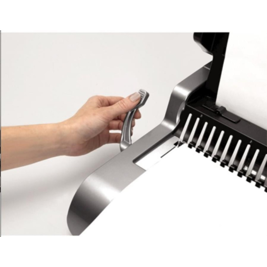 Špičkový dizajn, funkčná presnosť a komfortná obsluha sú vlastnosti tohto vazača s elektrickým pohonom děrovacieho nástroja. Děrovací kapacita až 25 listov 80 g papiera. Kapacita vazby až 500 listov. Je optimálnou voľbou pre pohodlnú prácu pri kancelárskom použití. Vkladanie děrovaných listov shora a presné nastavenie dorazu zväzku významne pomáha zabezpečiť jeho bezchybné perforovanie.
