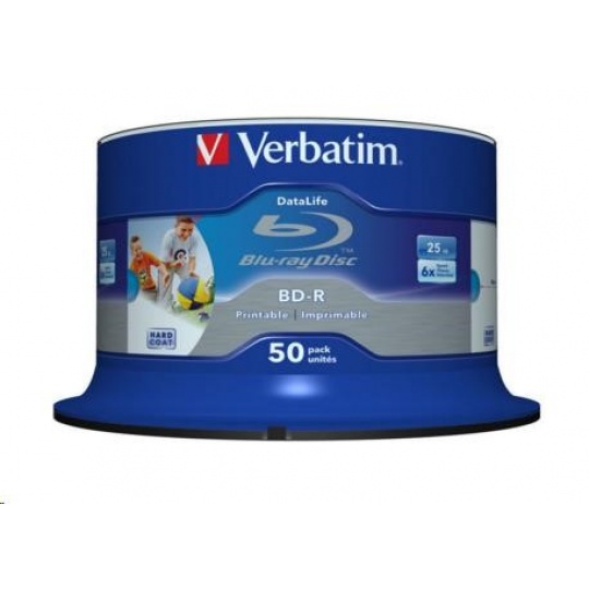 VERBATIM BD-R SL Datalife (50-pack)Blu-Ray/Spindle/6x/25GB Wide Printable