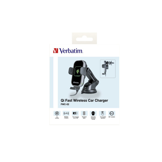 VERBATIM Držák do Auta Bezdrátová rychlonabíječka Qi 15W FWC-02