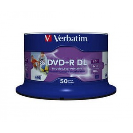VERBATIM DVD+R(50-pack)DoubleLayer/Spindle/8X/8.5 GB/tlačiteľné/bez identifikátora