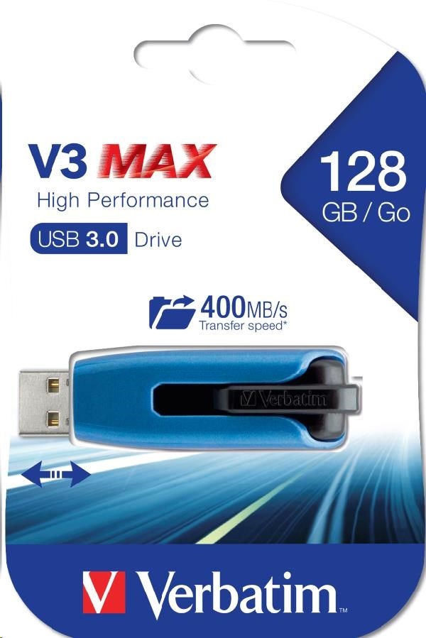 VERBATIM Flash disk 128 GB V3 MAX, USB 3.0, modrá
