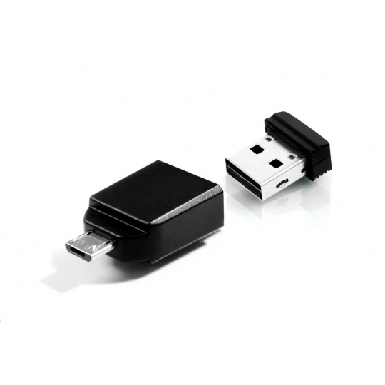 VERBATIM Flash disk 32 GB Store 'n' Stay Nano + adaptér micro USB OTG, USB 2.0, čierna