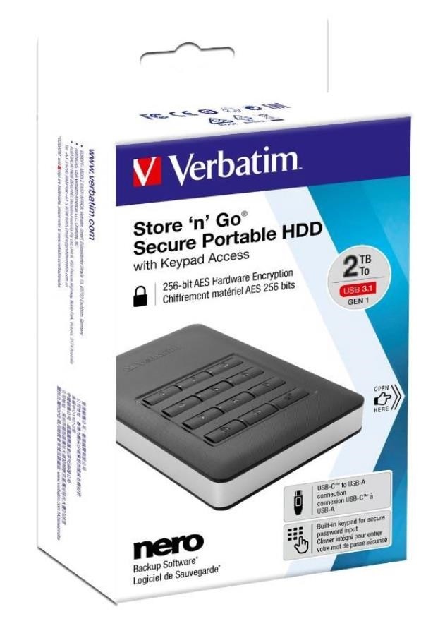 VERBATIM HDD 2.5" 2 TB vrátane.KEYPAD USB3.1 USB 3.0 GDPR