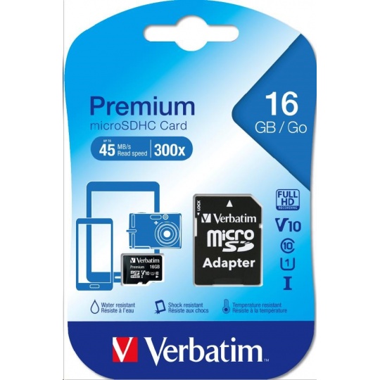 Karta VERBATIM MicroSDHC 16GB Premium, U1 + SD adaptér