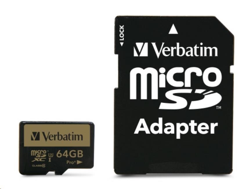 Karta VERBATIM MicroSDXC 64GB PRO+ Class 10, UHS 1 (R:90/W:80 MB/s)