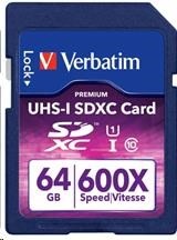Karta VERBATIM SDXC 64GB PREMIUM, UHS-1, Class 10 (R:90/W:25 MB/s)