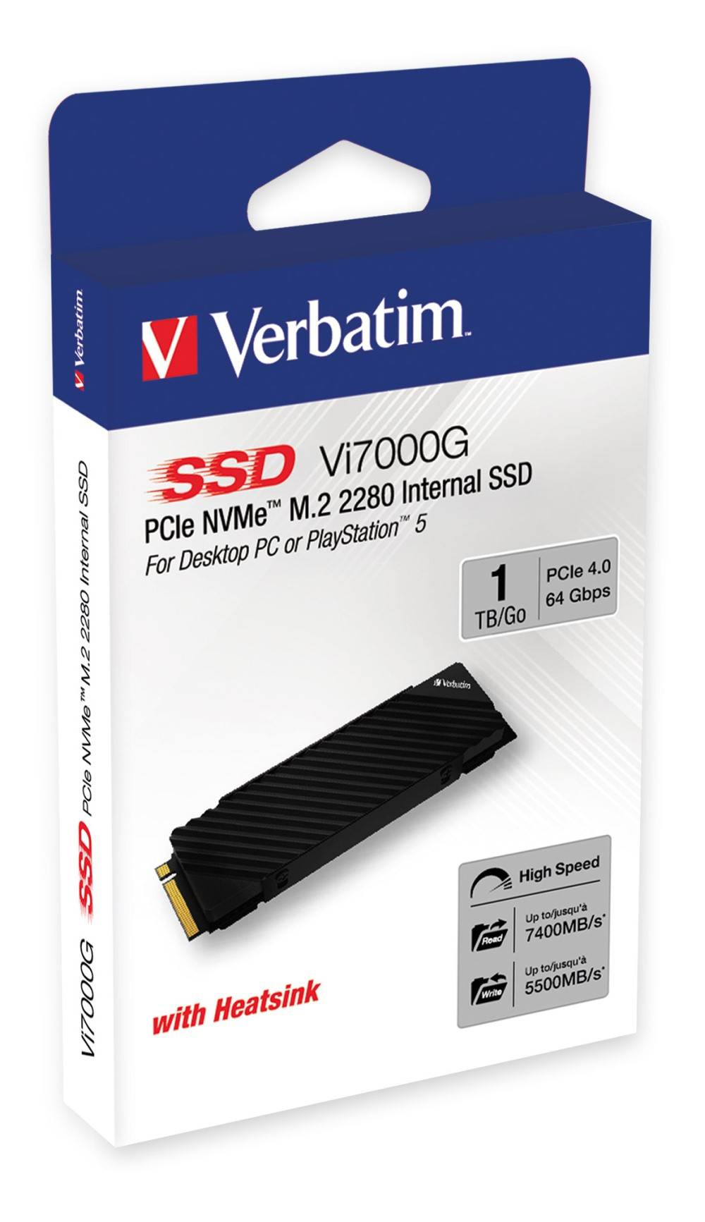 VERBATIM SSD Vi7000G Internal PCIe NVMe M.2 SSD 1TB , W 5500/ R 7400MB/s