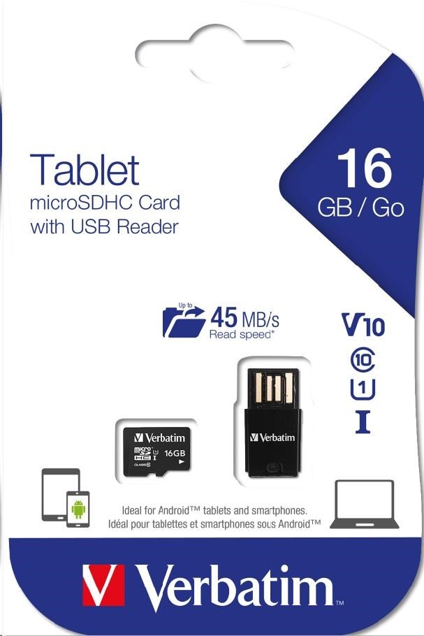 VERBATIM Tablet microSDHC C10/U1 s USB čítačkou 16GB (R:45MB/s, W:10MB/s)