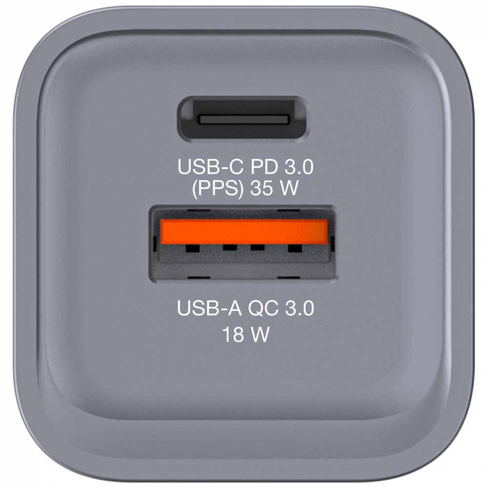 GaN nabíjačka do siete Verbatim s výkonom 35 W v elegantnom dizajne, ktorý sa zmestí do dlane, kombinuje jeden port USB-C PD 35 W a jeden port USB-A QC 3.0. Ideálna do kancelárie, na domáce použitie alebo na cesty, kde dodá energiu vášmu tabletu, chytrému telefónu, herným a mnohým ďalším zariadeniam.