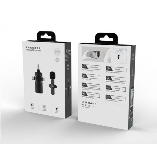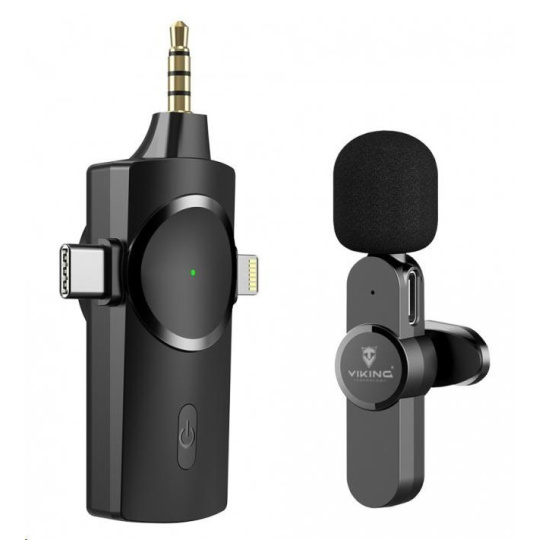 Bezdrôtový mikrofón Viking s klipom M360, USB-C / Lightning / 3,5 mm jack