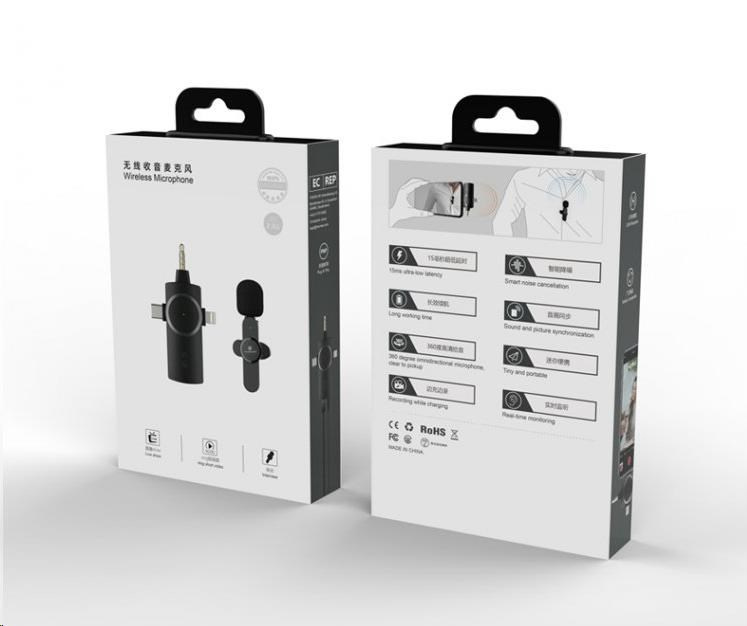Bezdrôtový mikrofón Viking s klipom M360, USB-C / Lightning / 3,5 mm jack
