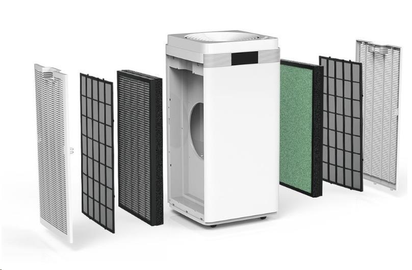 - 2x 4 stupňová filtrácia vrátane ™?HEPA filtra a filtračnej vrstvy studeného katalyzátora, ktorý účinne rozkladá organické zlúčeniny a toxické látky, rovnako ako UV lampa.
