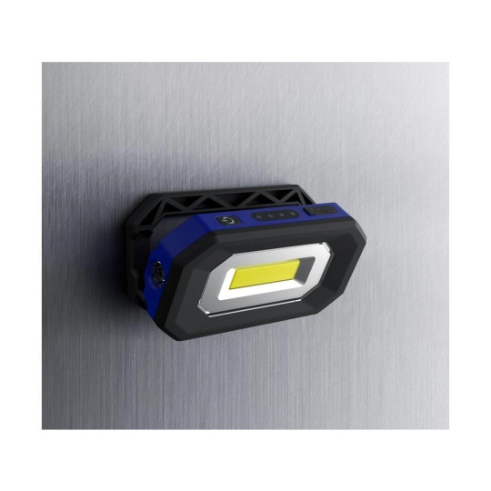 - Dve svetlá pre lepšie pokrytie: Hlavné svetlo (COB): Svietivosť až 500 lm pre intenzívne osvetlenie pracovného priestoru. Bočné kruhové svetlo (SMD): 150 lm pre menšie, prenosné osvetlenie v tesných priestoroch.