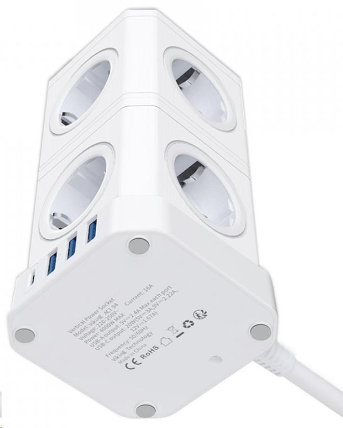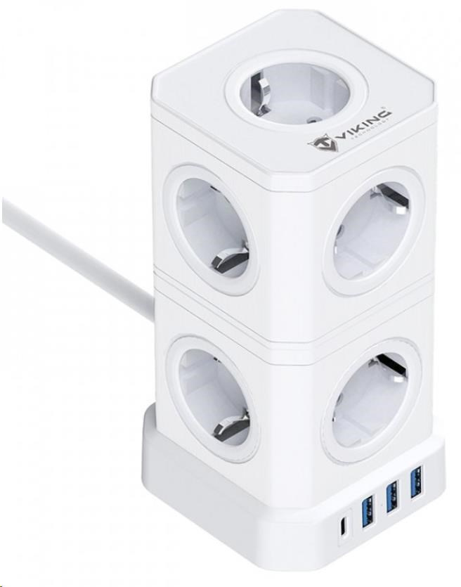 Predstavujeme Viking ACT94 - revolučnú elektrickú zásuvku, ktorá rozširuje štandardnú zásuvku o ďalších 9 x AC 230V, 3 x USB-A a 1x USB-C výstupy.