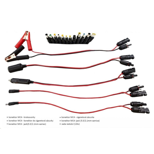 - Veľké množstvo redukcií a konektorov pre neobmedzené možnosti nabíjania