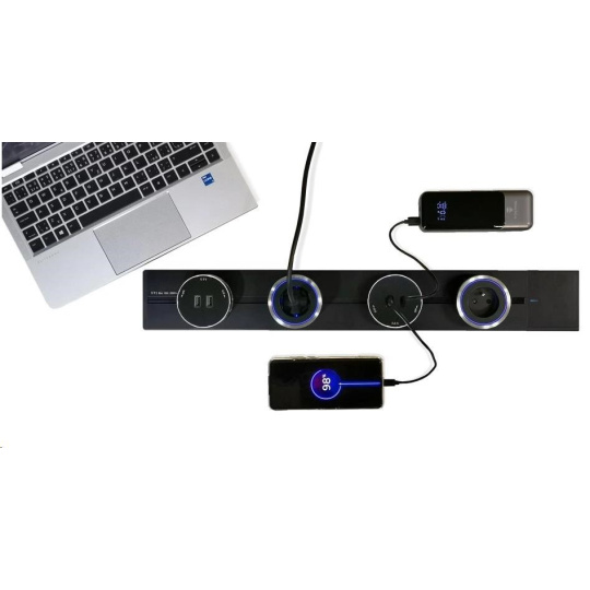 - Bezpečný a pevný dizajn: Zásuvková lišta je vyrobená odolnej hliníkovej zliatiny, čo zabezpečuje dlhú životnosť a ochranu proti prehriatiu. Tesníci pásik chráni proti prachu a náhodnému dotyku, čím znižuje možnosť úrazu elektrickým prúdom.