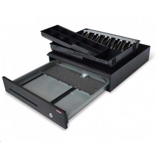 Pokladničná zásuvka Virtuos C425C, s 24V káblom, kovová. držiaky, 9-24V, čierne