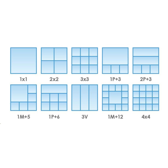 monitorovacie zariadenie pre zobrazenie až 32 kamier (až 20Mpix kamera), 4K video výstup HDMI, H.265, dekódovacia kapacita 3840x2160@90fps (3-CH) alebo 1920x1080@360fps (12-CH), USB