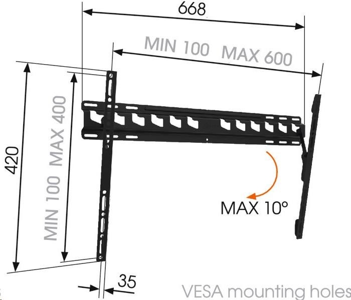 Ďalšie vlastnosti:- Vzdialenosť televízora od steny 35 mm