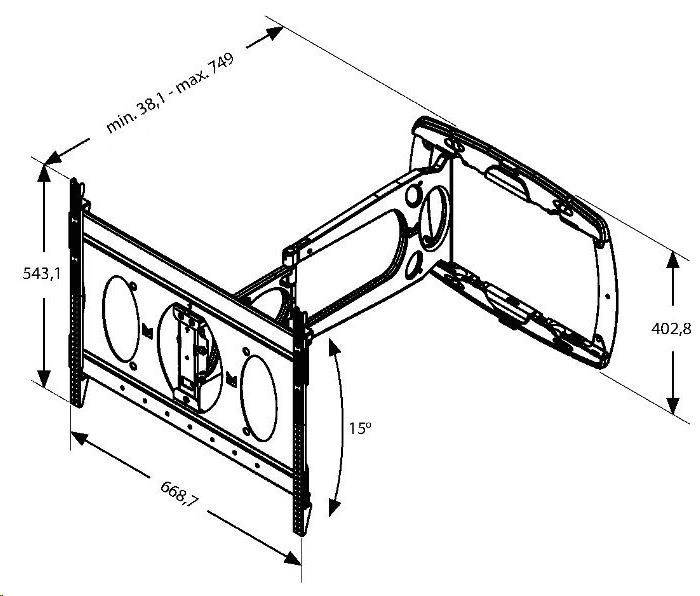 - možnosť vytiahnutia televízora až do vzdialenosti 76 cm od steny
