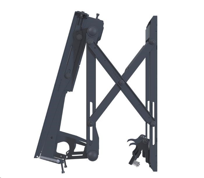 Systém pre montáž videosteny z displejov s hmotnosťou do 72 kg. Je vybavený pružinovým mechanizmom, ktorý po stlačení vysunie displej na nožnicovom mechanizme o 21 cm dopredu pre jednoduchú výmenu a servis jednotlivých prvkov videosteny