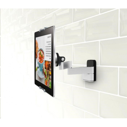Tablet je veľmi užitočným nástrojom aj v kuchyni, a to nielen na vytváranie hudobných kulís, ale aj ako pomocník pri príprave kulinárskych výtvorov. Spoločnosť Vogel navrhla pohyblivú konzolu, ktorá poskytuje spoľahlivé a flexibilné upevnenie na stenu, aby sa maximalizovalo jej využitie. Nezaberá miesto na pracovnej ploche a udržuje tablet v bezpečnej vzdialenosti od striekajúcej vody.