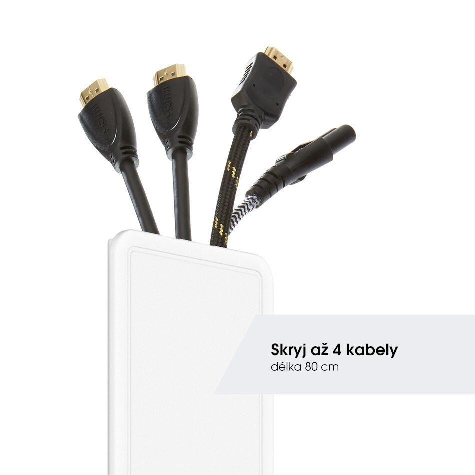 S kabelovou lištou TVA 6000 môžete bezpečne a upratané skryť štyri káble mimo dosah detí a domácich zvierat. Dizajn je štýlový a veľmi plochý s minimálnou vzdialenosťou od steny len 14 mm a dĺžkou 80 cm. Je samozrejme vhodný pre ukrytie rôznych typov káblov, napríklad HDMI, USB, AUX alebo napájacích káblov.